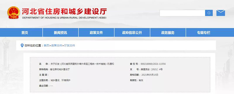 關于印發《河北省民用建筑外墻外保溫工程統一技術措施》的通知